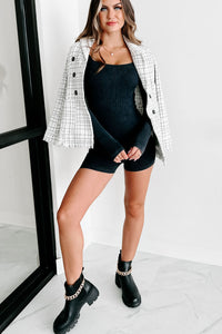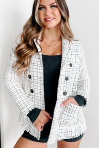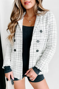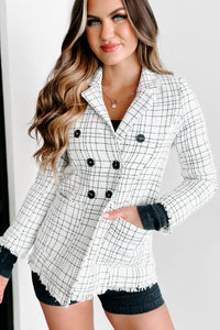Corporate Secrets Tweed Blazer (White/Black) - NanaMacs