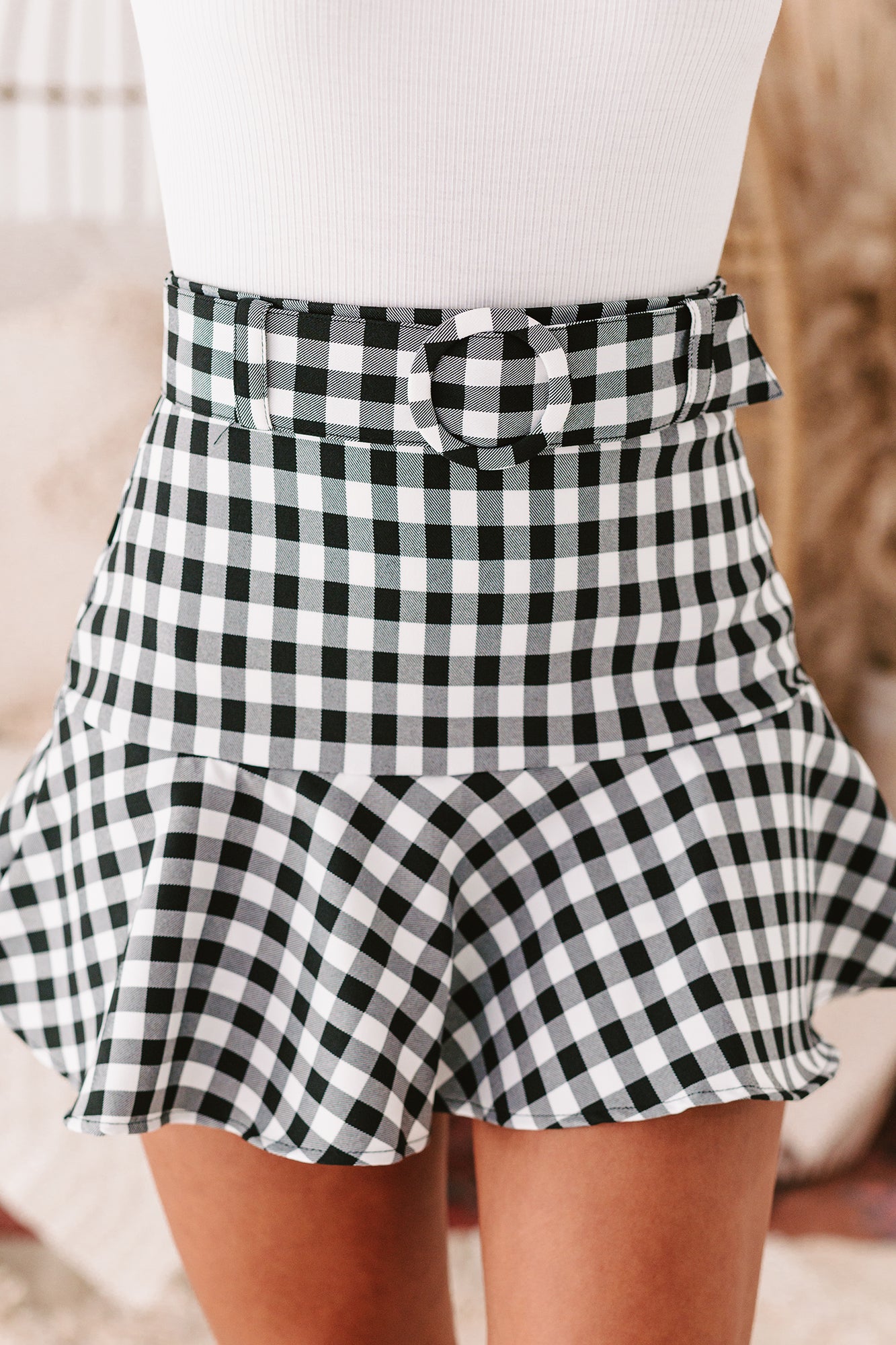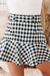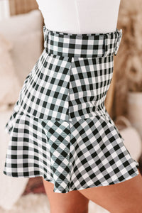 You Have To Get This Adorable, Black & White, Gingham Print, Belted, Mini Skort Before It's Gone!