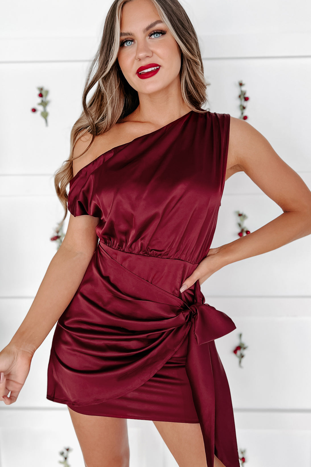 Look Classy In This On Shoulder Satin Mini Dress!