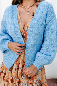 Cozy & Content Chunky Knit Cardigan (Blue)