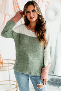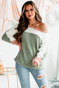 Cozy Girl Fuzzy Knit Sweater (Olive Multi)