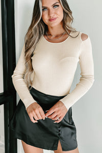This Ribbed Bodysuit Has A Slit Shoulder Detail That Gives A Slight, Edgy Vibe That'll Go Perfectly With Some Chunky Boots!