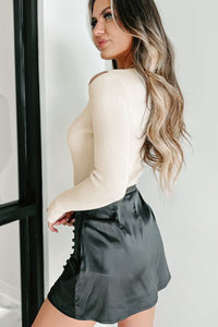 Cozy In Kalispell Ribbed Slit Shoulder Bodysuit (Oatmeal)