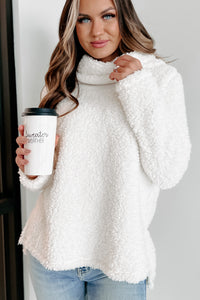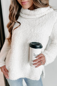 You'll Be So Cozy In This Cowl Neck Sherpa Long Sleeve Top!