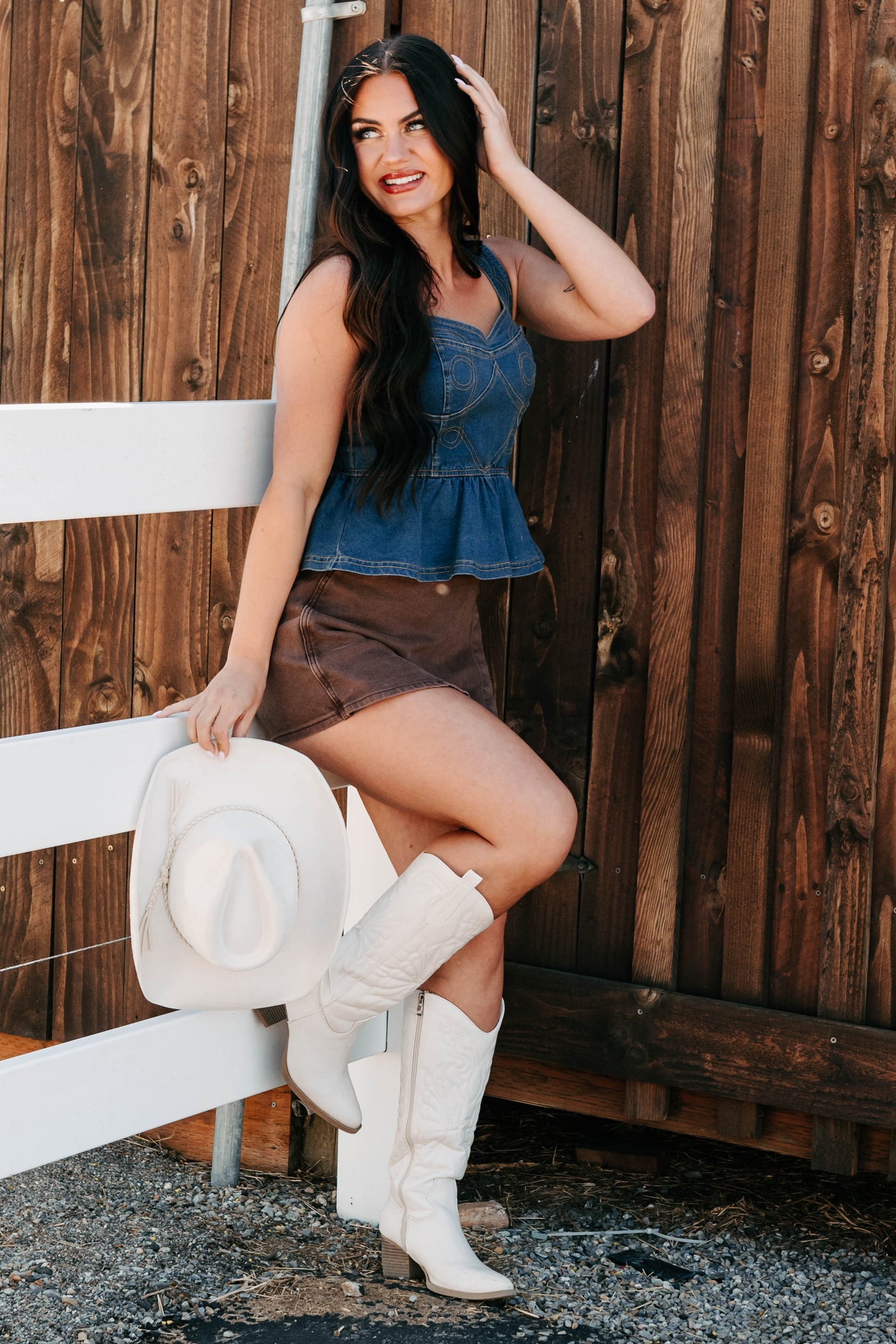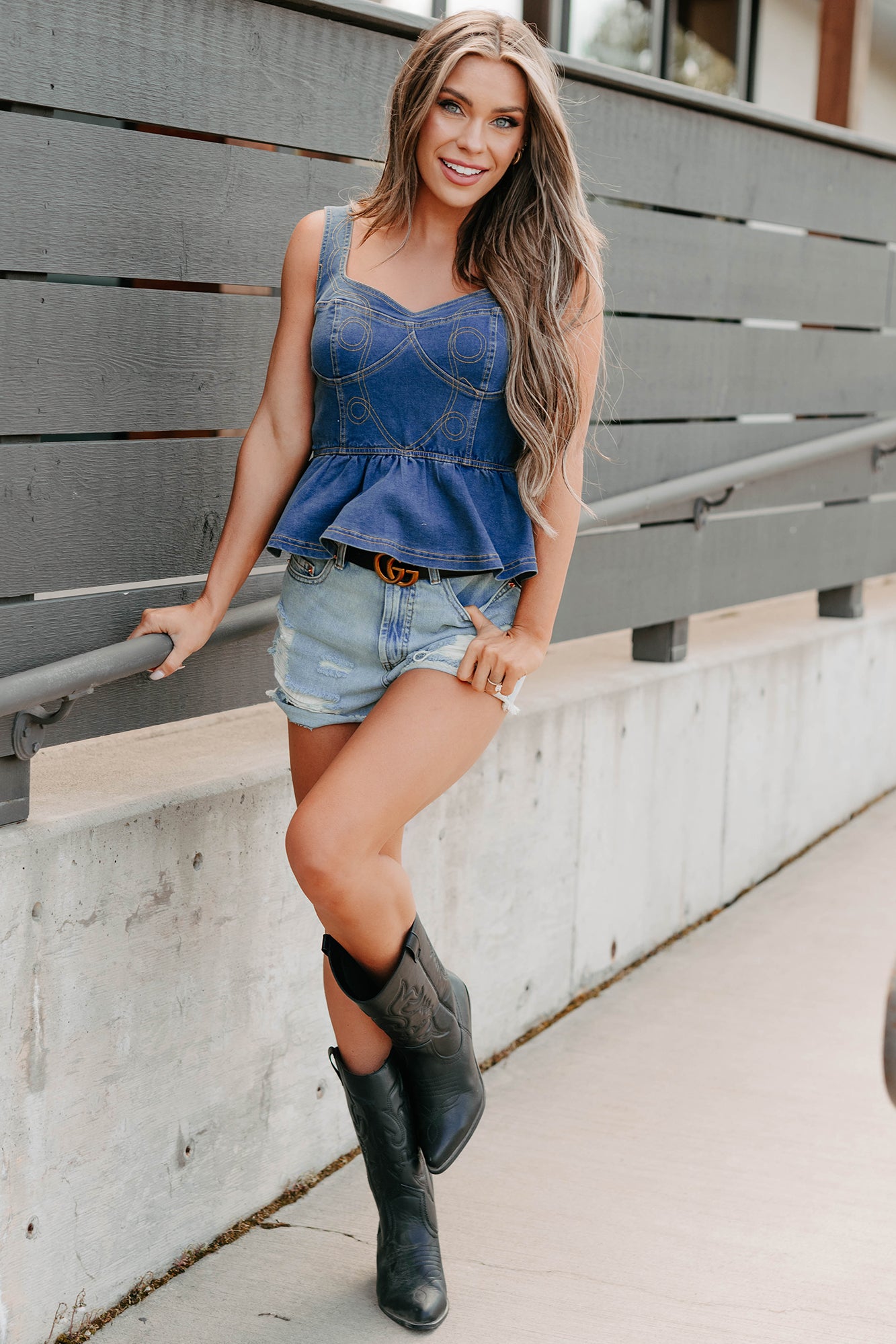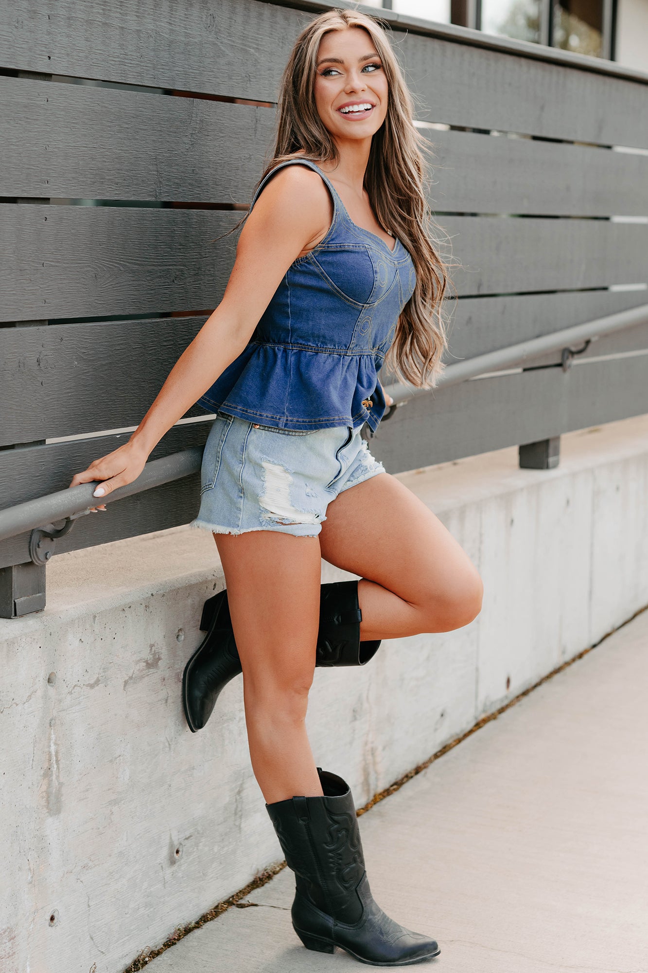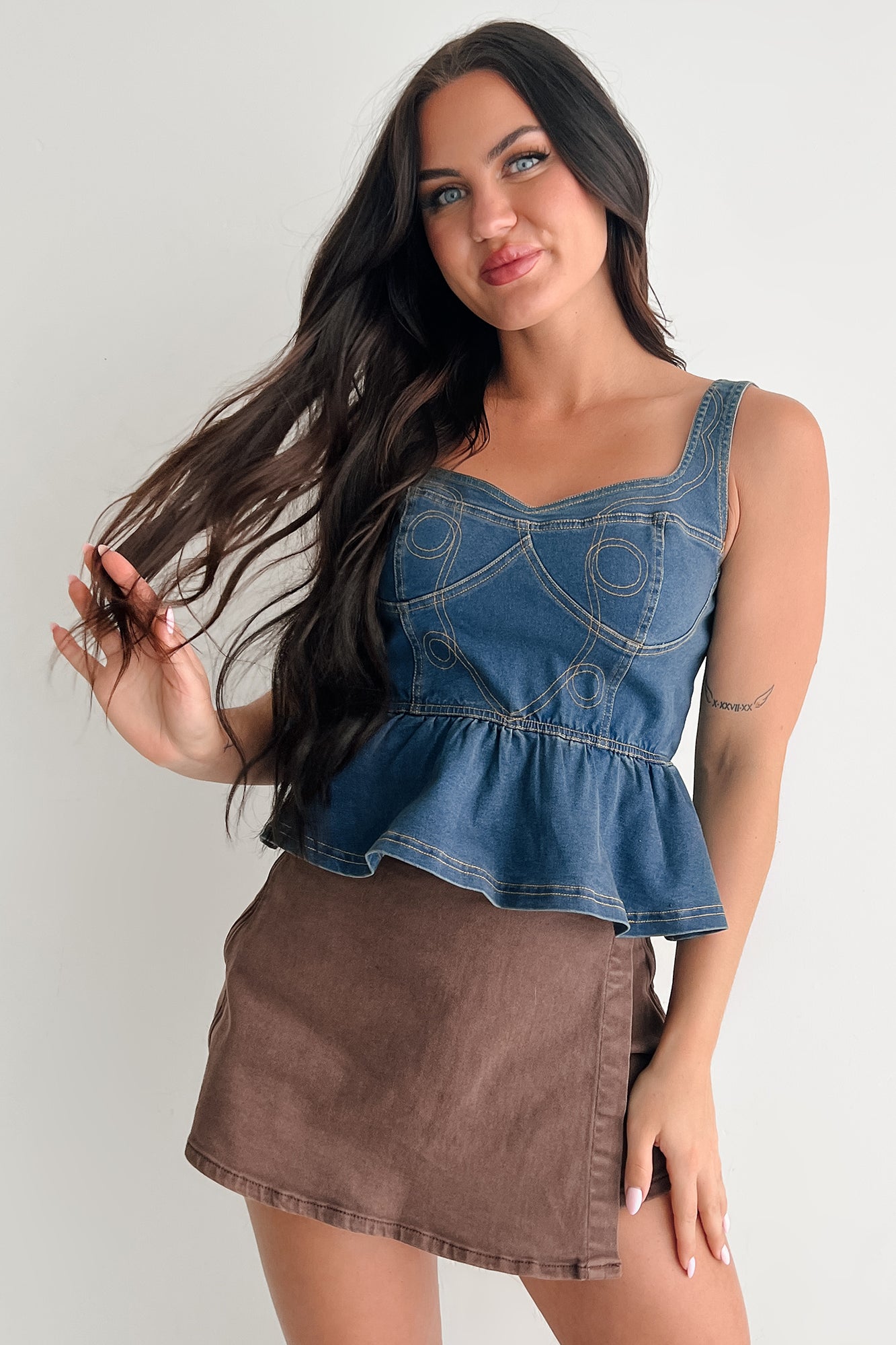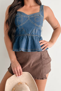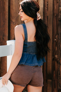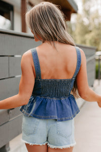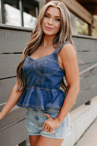 Dainty In Denim Peplum Tank Top (Medium Blue)