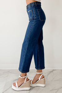 Damian High Rise Denim Lovelo Flare Jeans (Dark) - NanaMacs