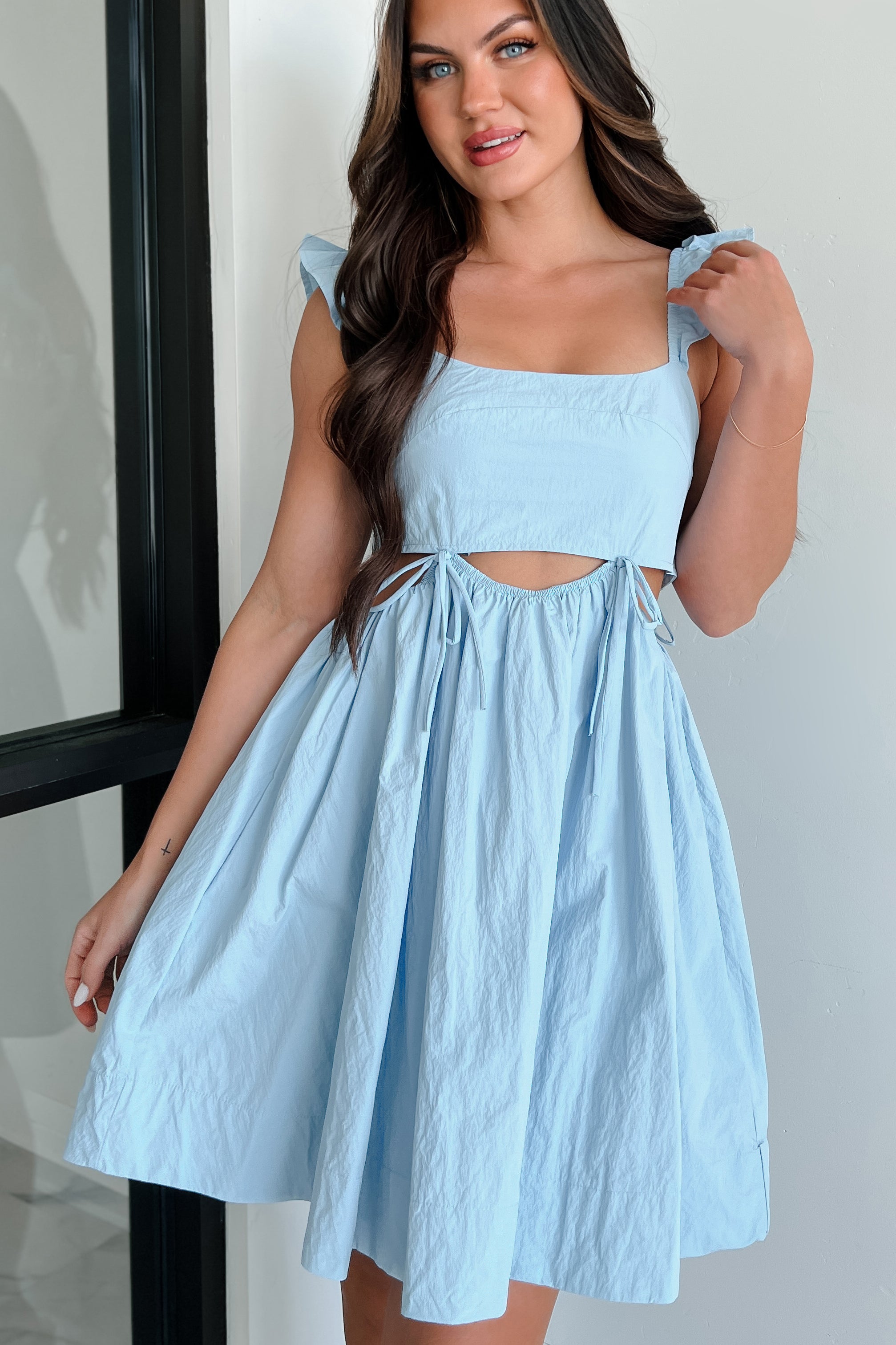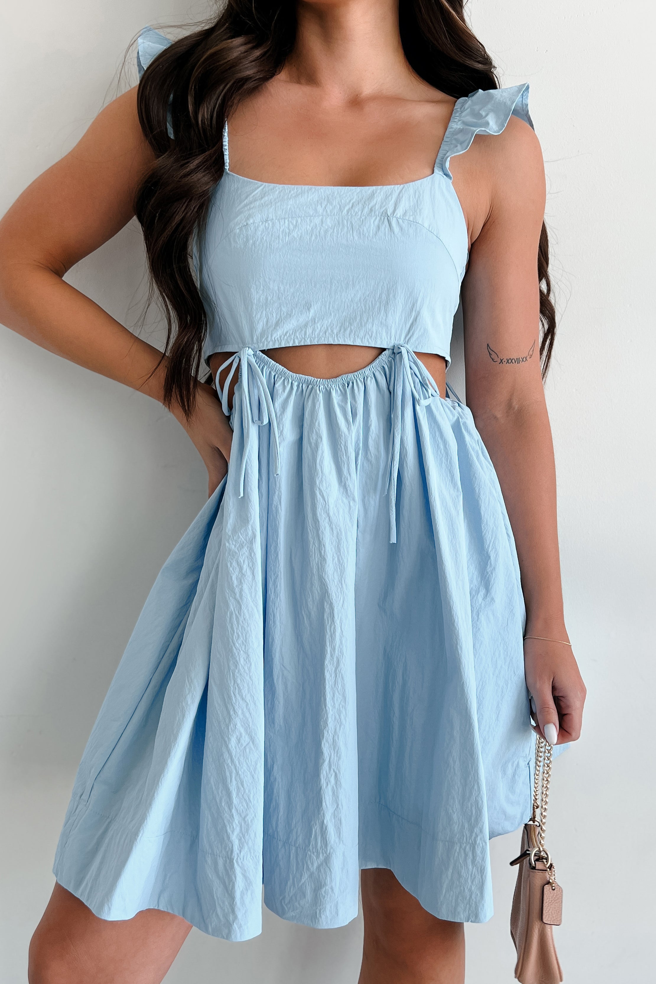 Dandelions And Daydreams Cut-Out Ruffled Mini Dress (Blue)