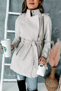 Dangerous Feelings Belted Vegan Leather Coat (Cream)