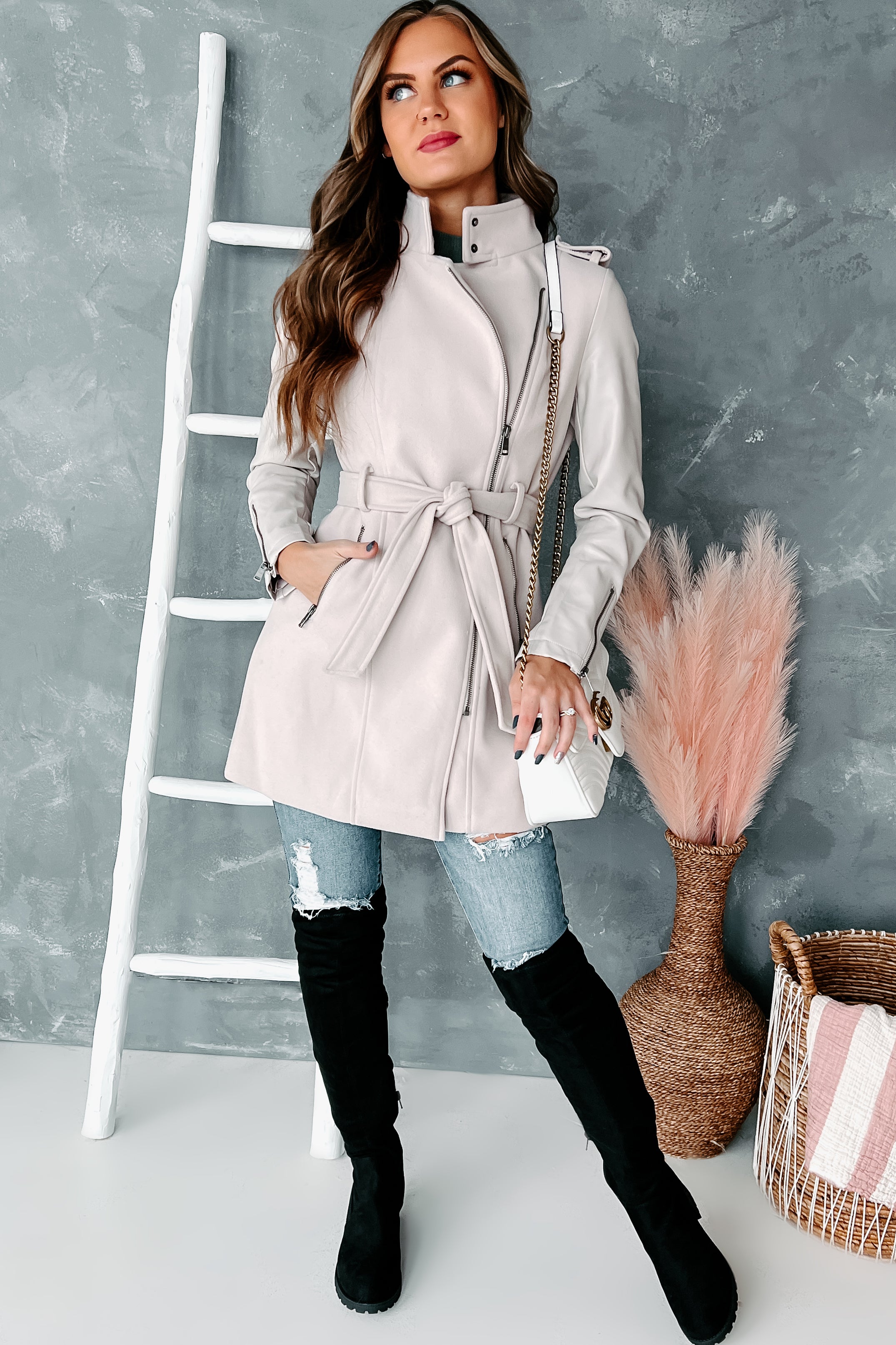 Dangerous Feelings Belted Vegan Leather Coat (Cream) - NanaMacs
