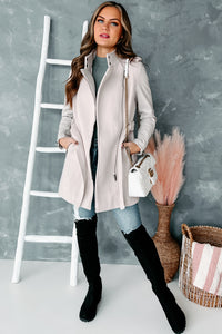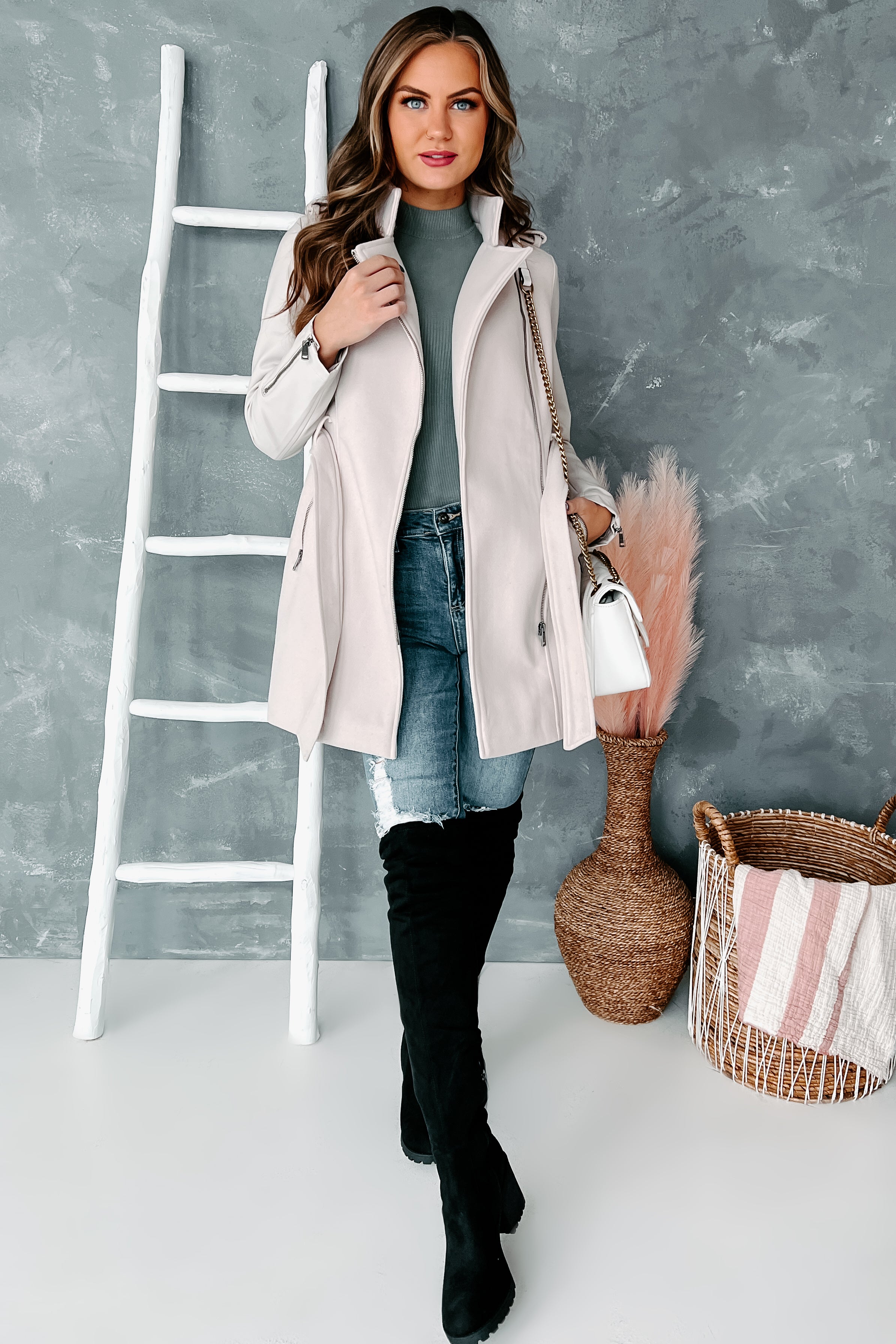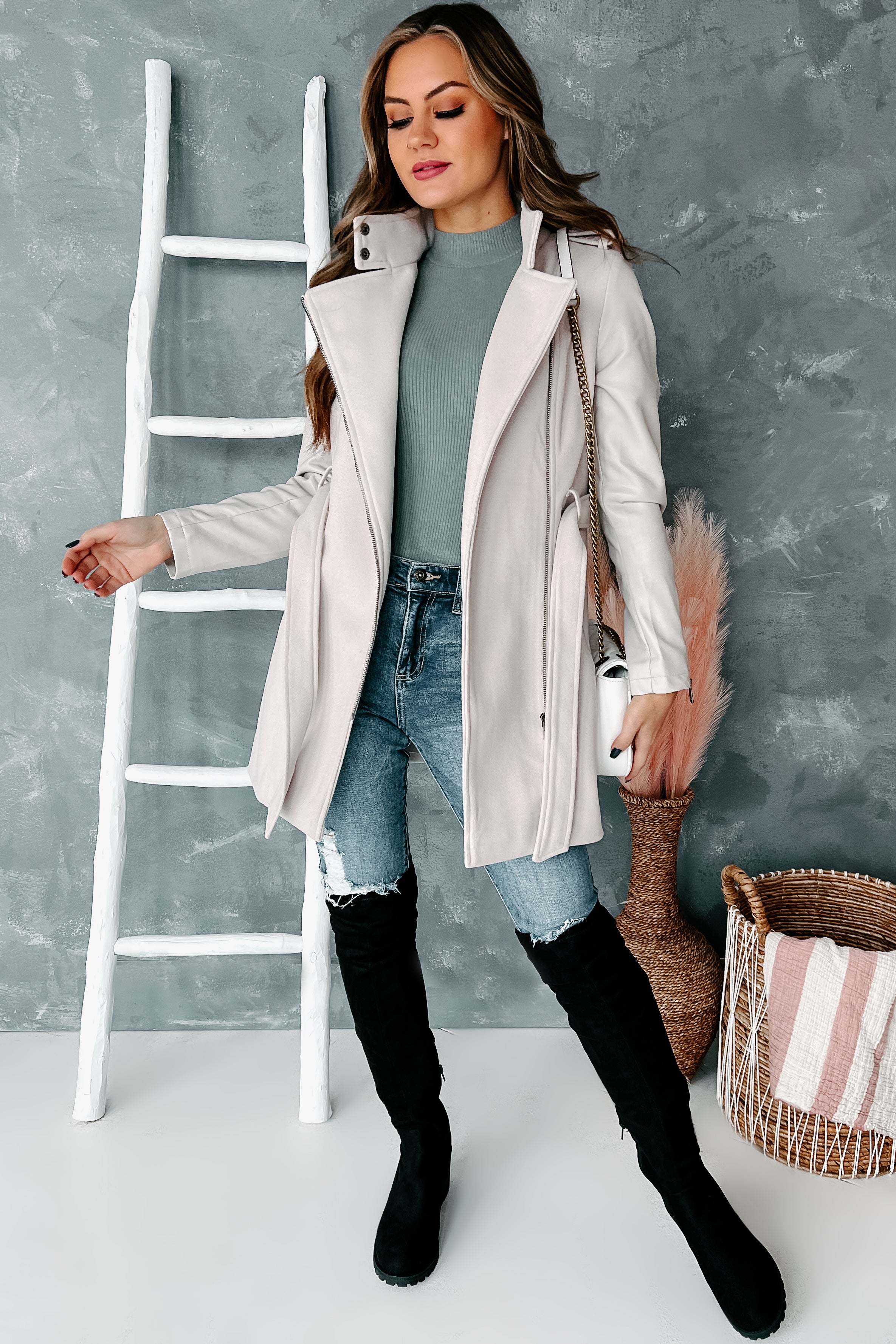 You're Gonna Obsess Over This Cream, Brushed Fleece Coat! The Vegan Leather Sleeves & Zipper Detailing Will Edge Up Your Outfit!