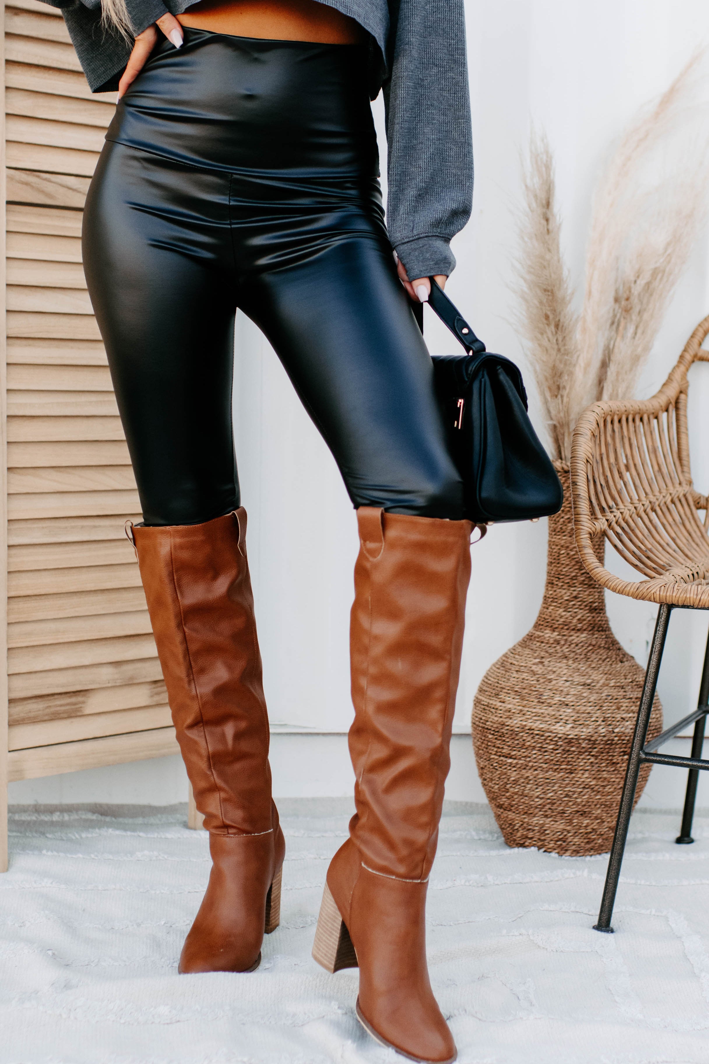 Give These Black Faux Leather Leggings A Try, We Dare You! You Will Love The Ultra High Waistband!