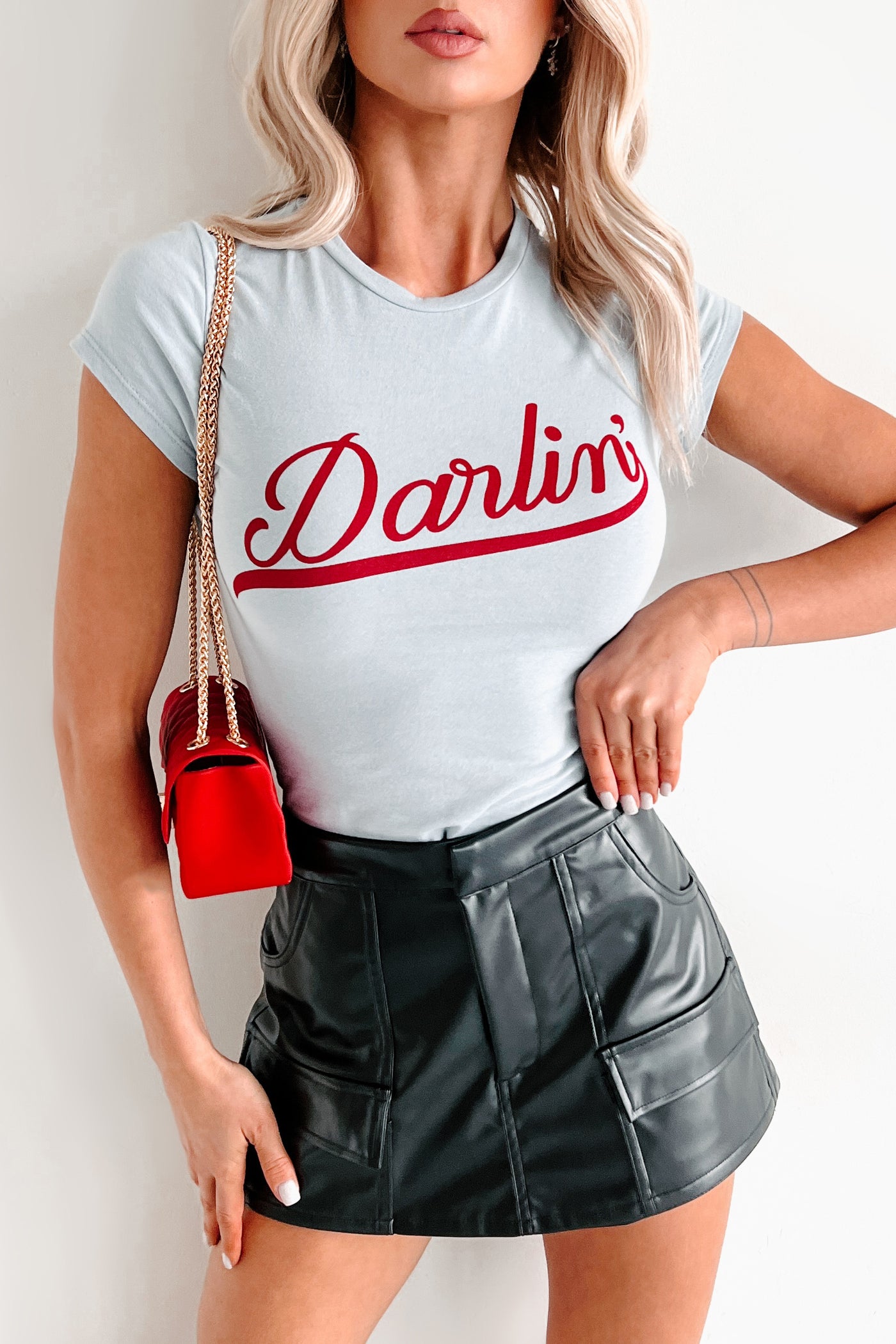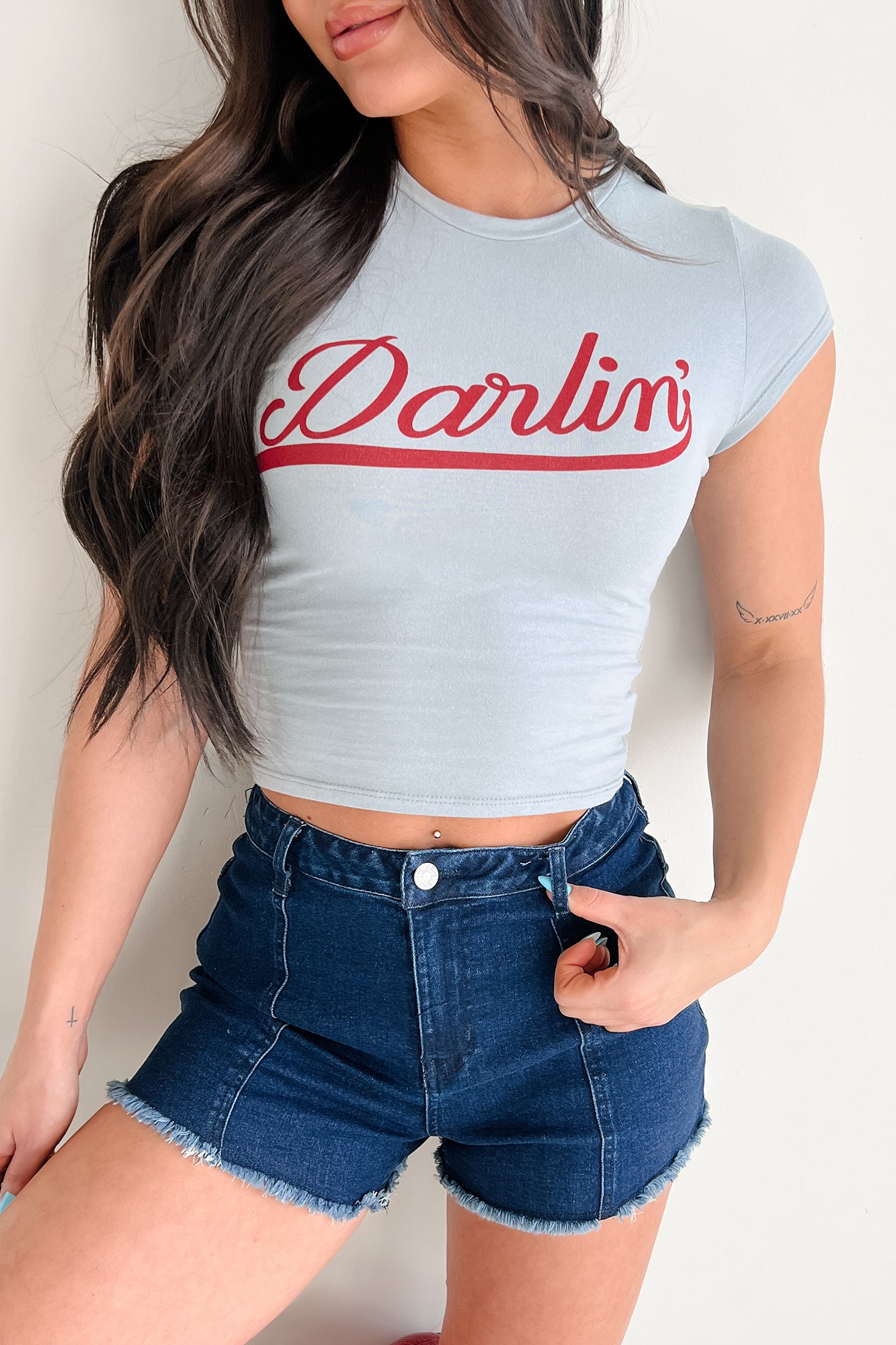 "Darlin" Short Sleeve Graphic Top (Dusty Steel)