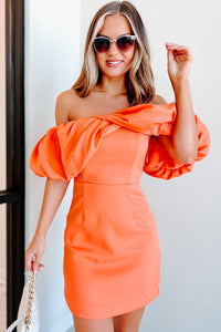 Day Dreamer Puff Of The Shoulder Mini Dress (Orange)
