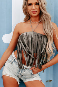 Desert Honey Vintage Wash Fringe Crop Top (Black Grey)