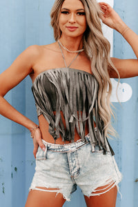 Desert Honey Vintage Wash Fringe Crop Top (Black Grey) - NanaMacs