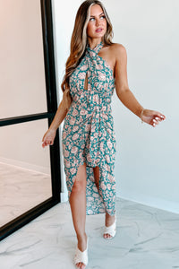 Desert Sunset Floral Halter Wrap Dress (Teal)