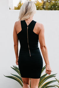 Destined For Dancing Cross-Over Halter Mini Dress (Black)