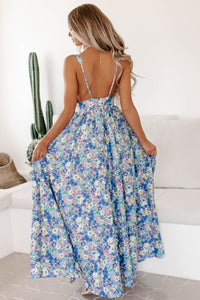 Devoted & Desired Tie-Waist Floral Maxi Dress (Blue/White)