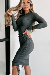 Don't Think About It Hooded Ruched Bodycon Dress (Charcoal)