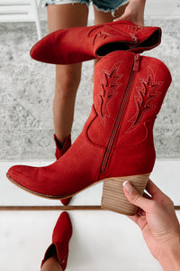 Don't Want Any Trouble Mid-Calf Western Booties (Vintage Red)