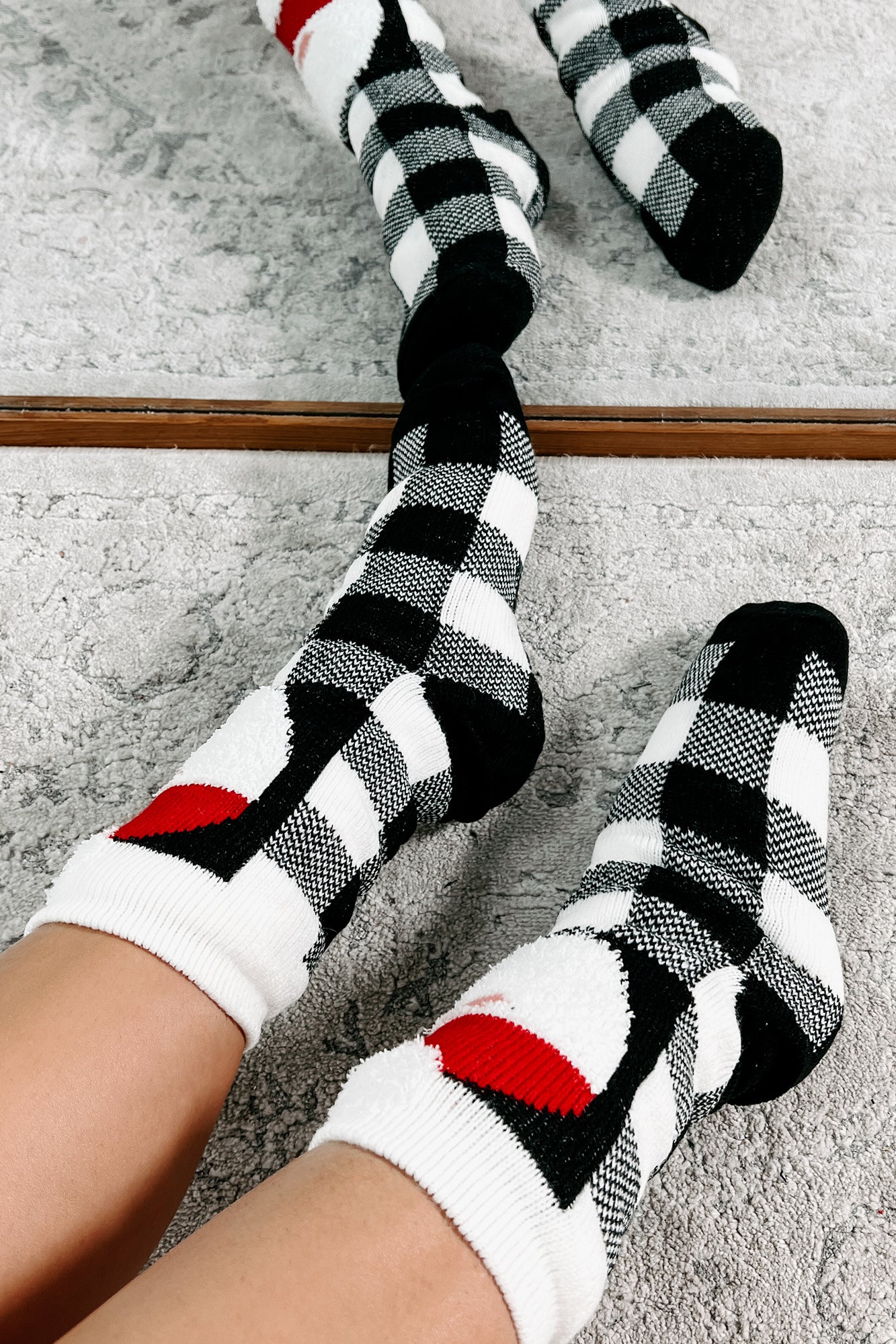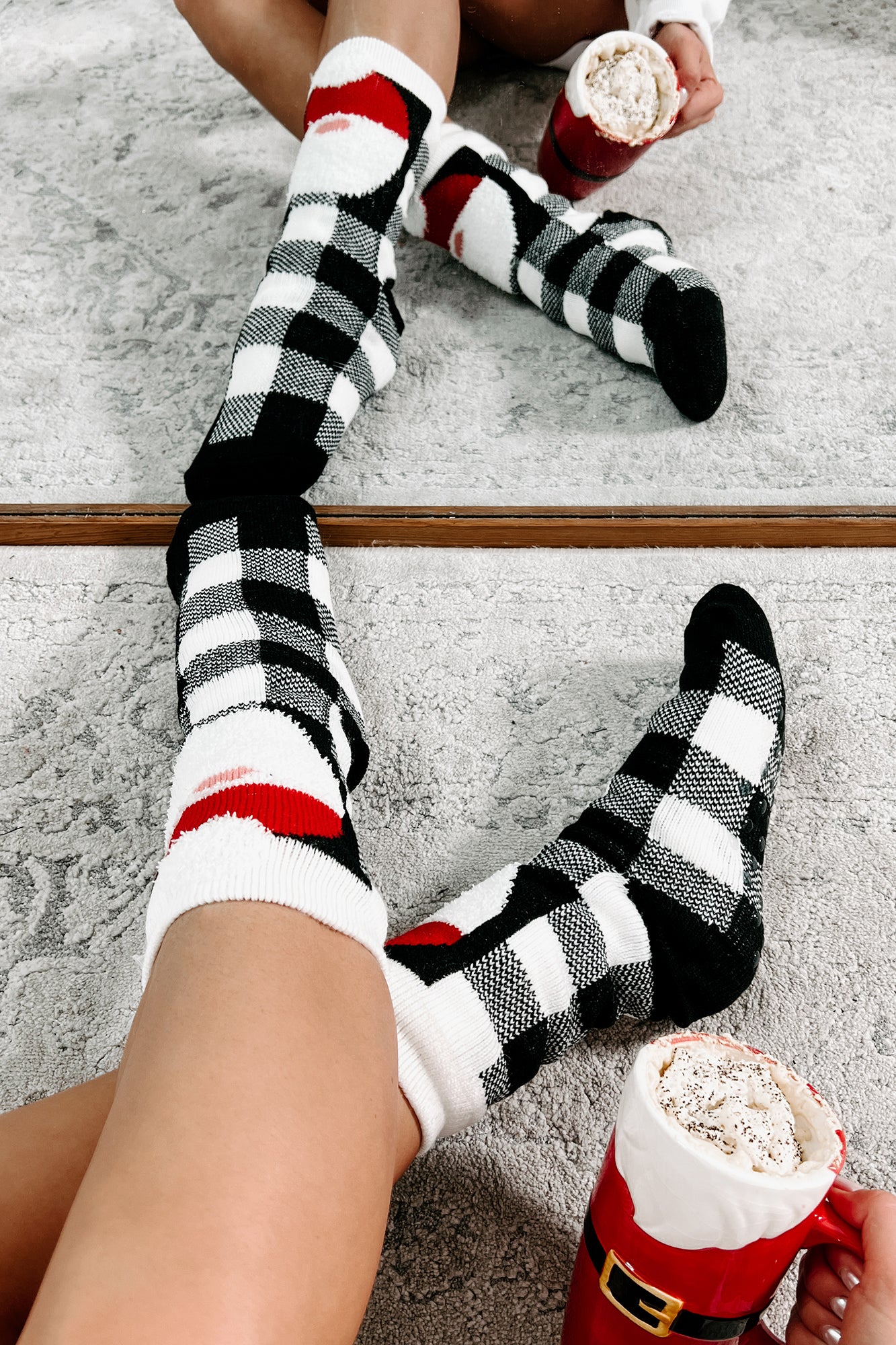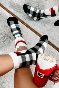 Doorbuster Cozy Kringle Sherpa Lined Plaid Santa Socks (White/Black) - NanaMacs