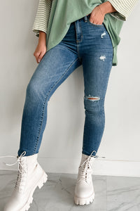 Doorbuster Cruising Through Life High Rise Distressed Sneak Peek Skinny Jeans (Denim) - NanaMacs