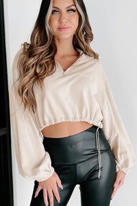 Holiday Steal- Make A Comeback Cropped Quarter-Zip Pullover (Seashell)