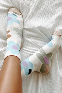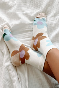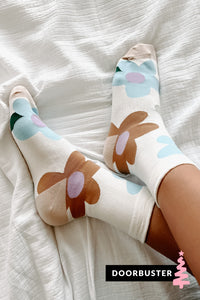 Doorbuster Tiptoeing Around Floral Crew Socks (Cream)