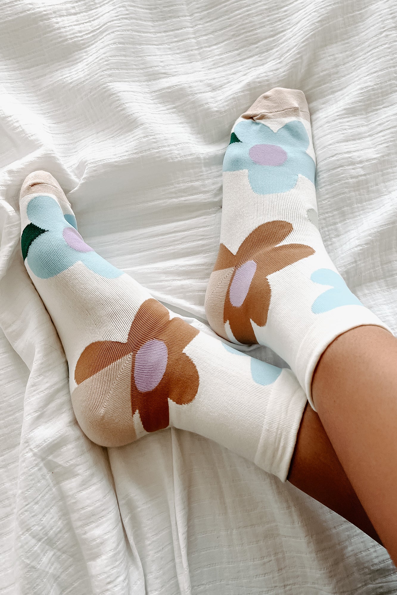 Doorbuster Tiptoeing Around Floral Crew Socks (Cream) - NanaMacs