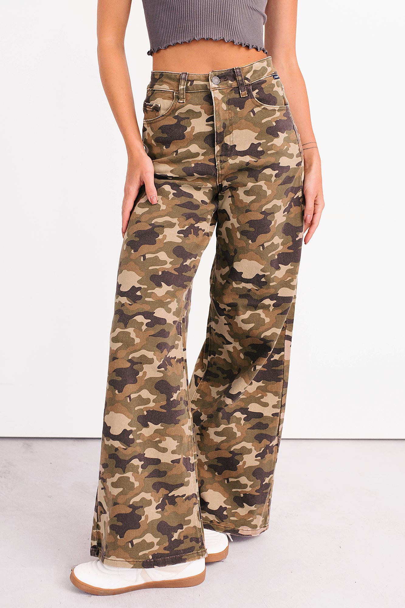 Douglas High Rise Wide Leg Cello Jeans (Camo)