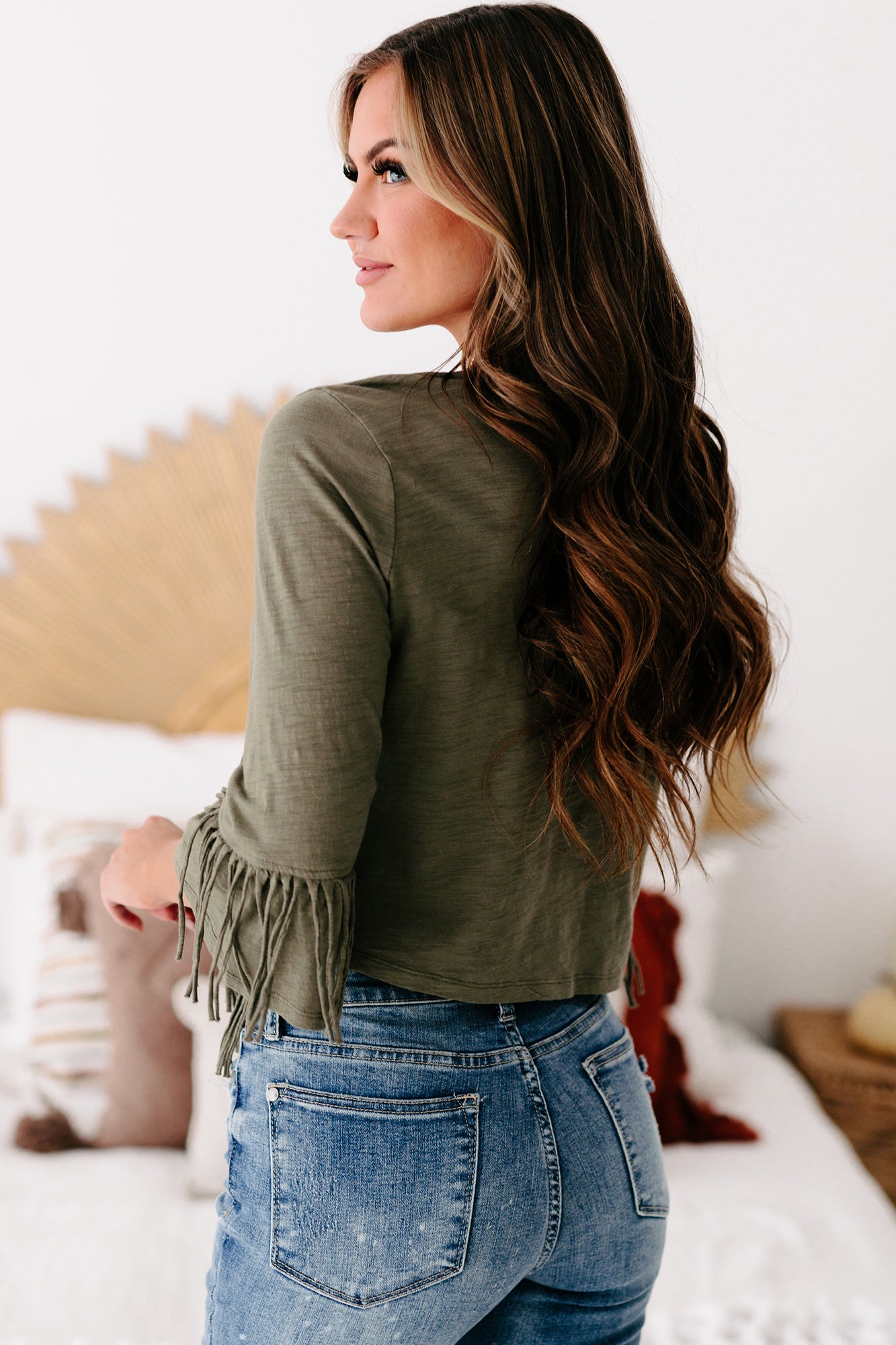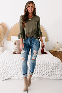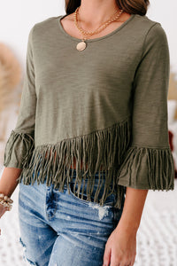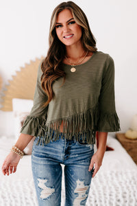 Eager Love Cross-Over Fringe Crop Top (Olive) - NanaMacs