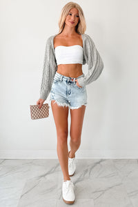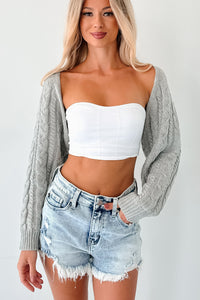 Ease Your Mind Cable Knit Bolero Shrug (Heather Grey)