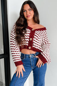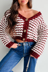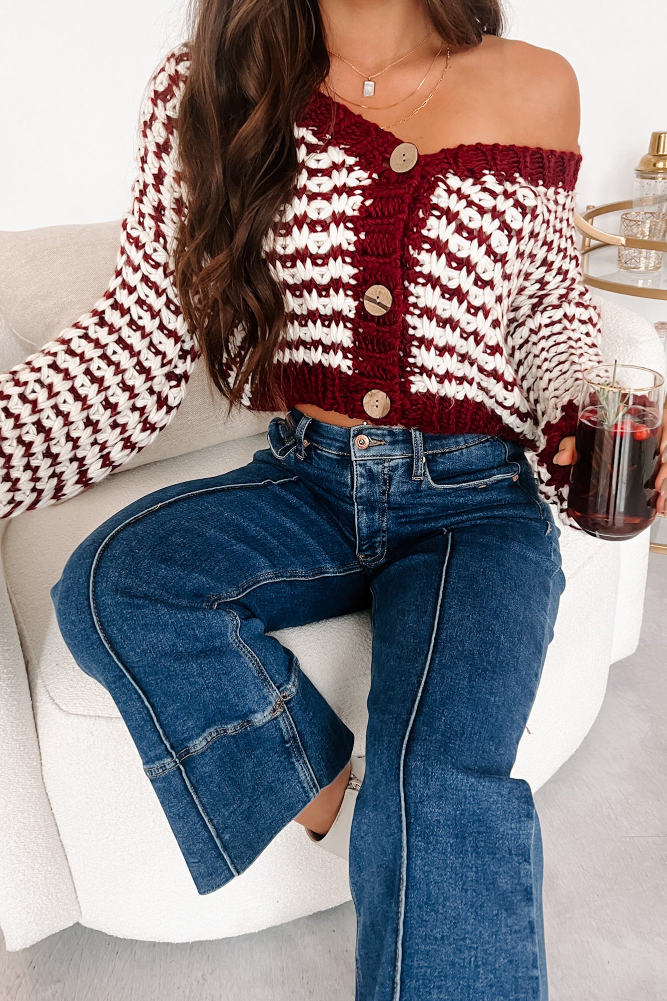 DOORBUSTER Easy Aspirations Chunky Striped Cardigan (Burgundy/White) - NanaMacs