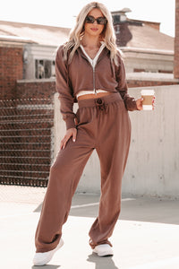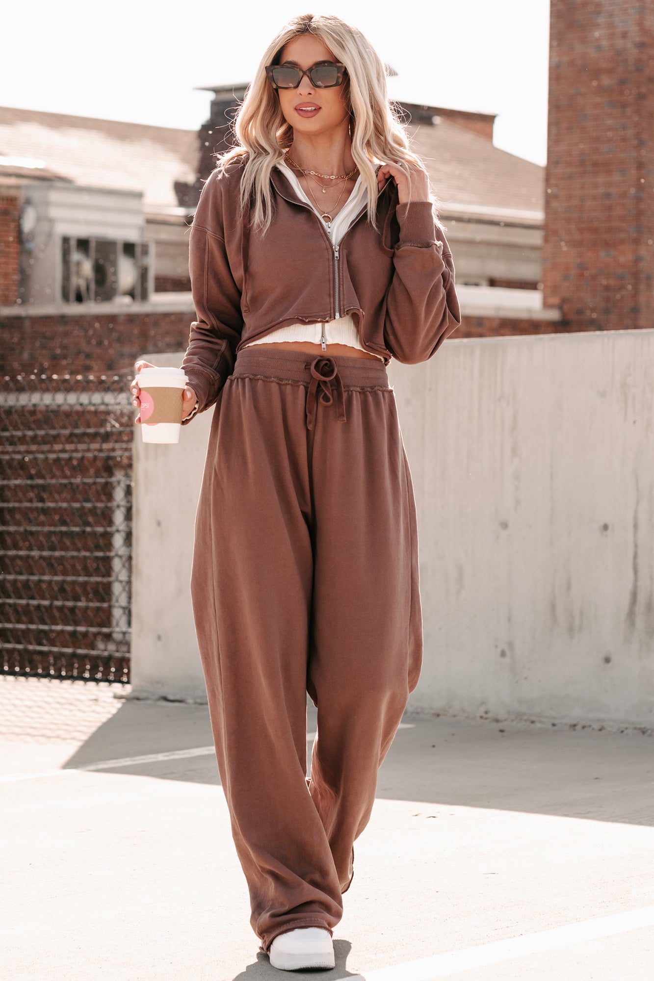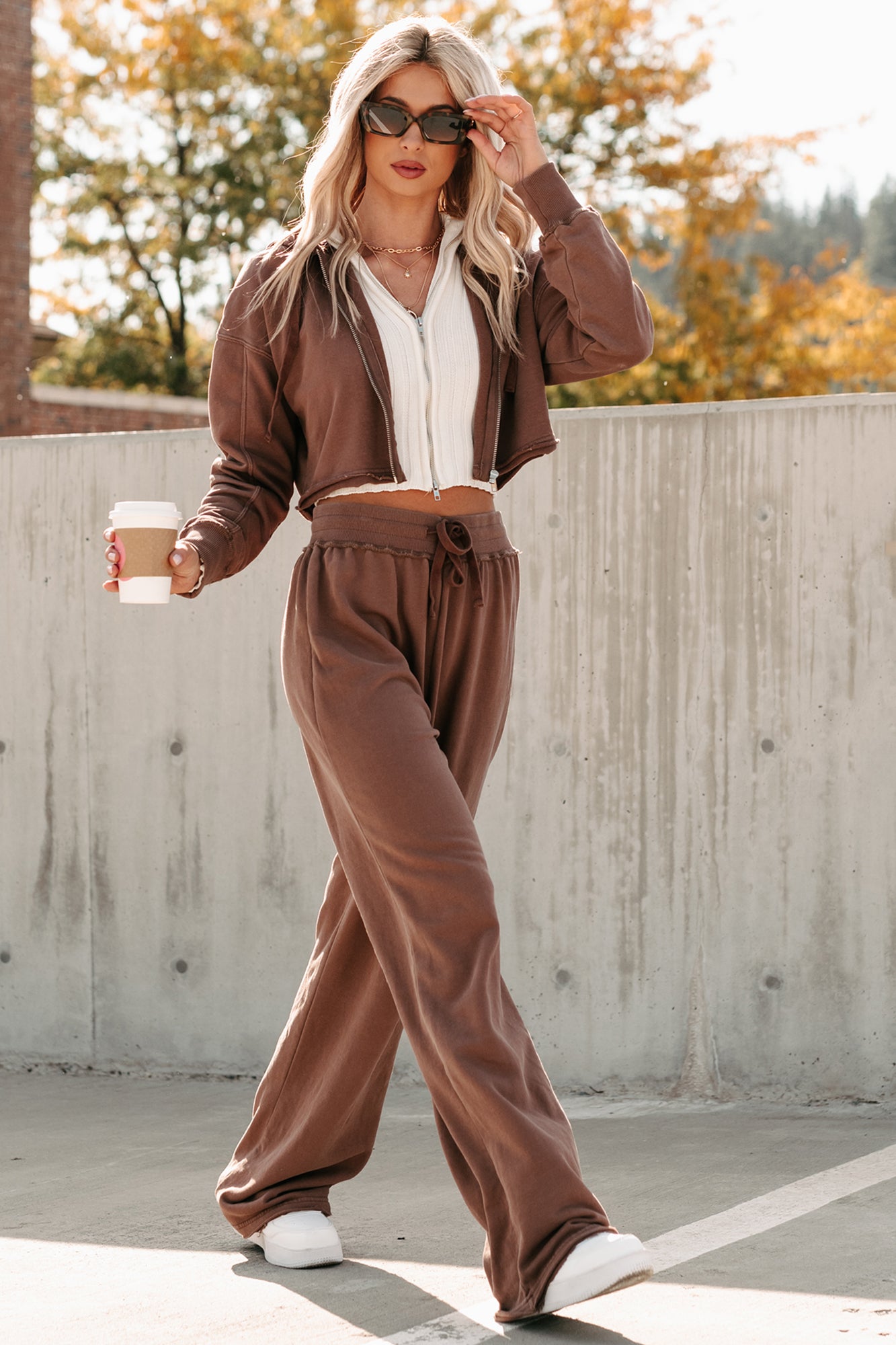 Easy To Imagine Crop Hoodie & Pants Set (Brown)
