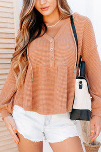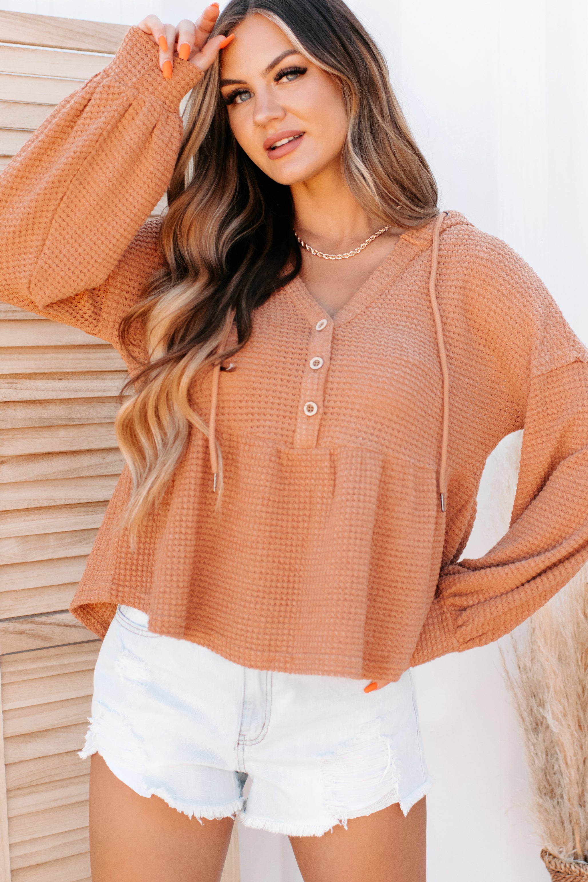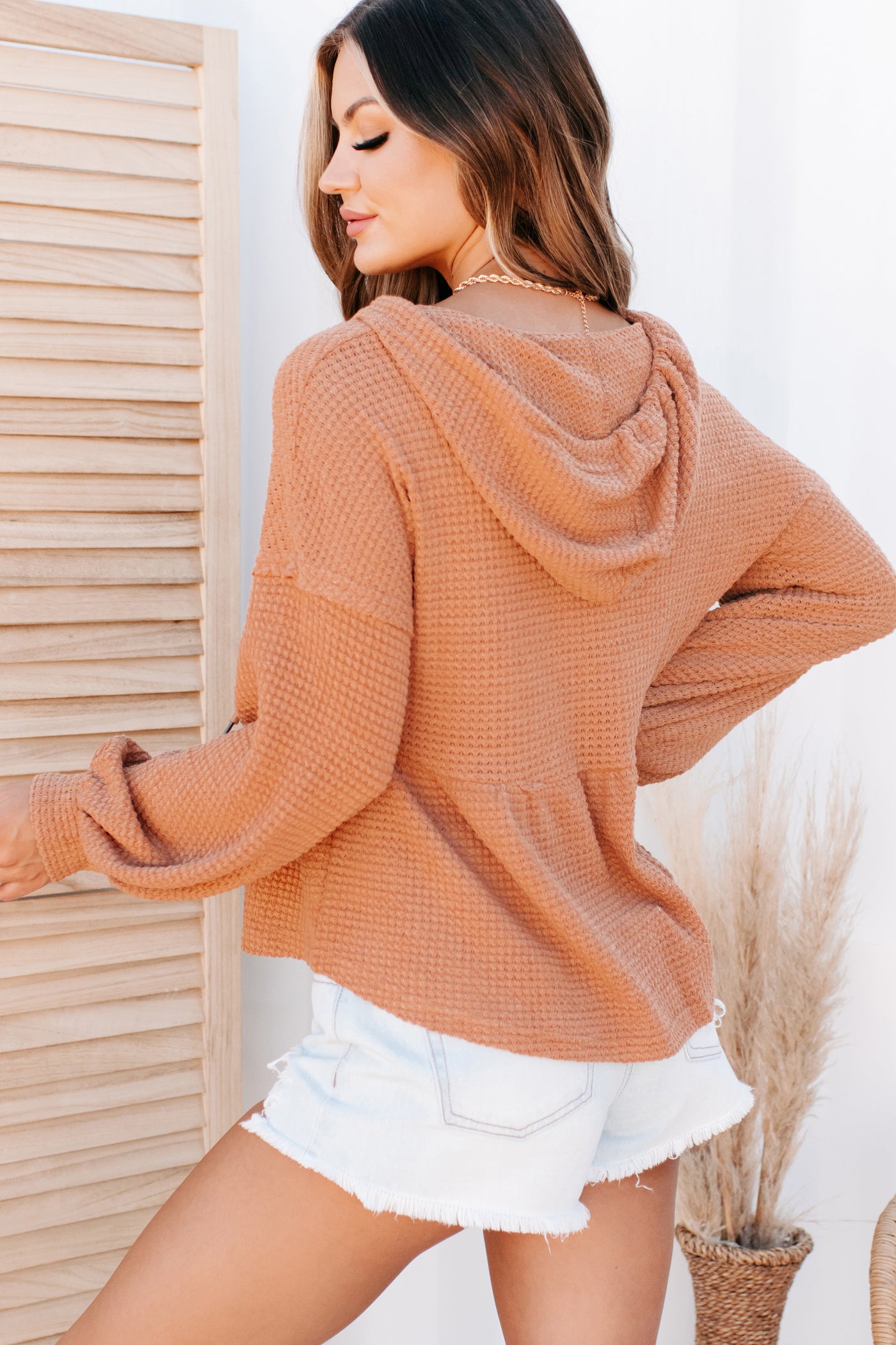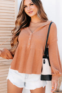 Emerlee Hooded Waffle Knit Top (Camel) - NanaMacs