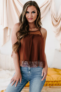 This Red Clay, Tie-Strap, Polka Dot Mesh, Tank Top Is A One Of A Kind Piece That Needs To Go In Your Wardrobe Today!