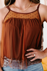 Endearing Love Polka Dot Mesh Tank Top (Red Clay)