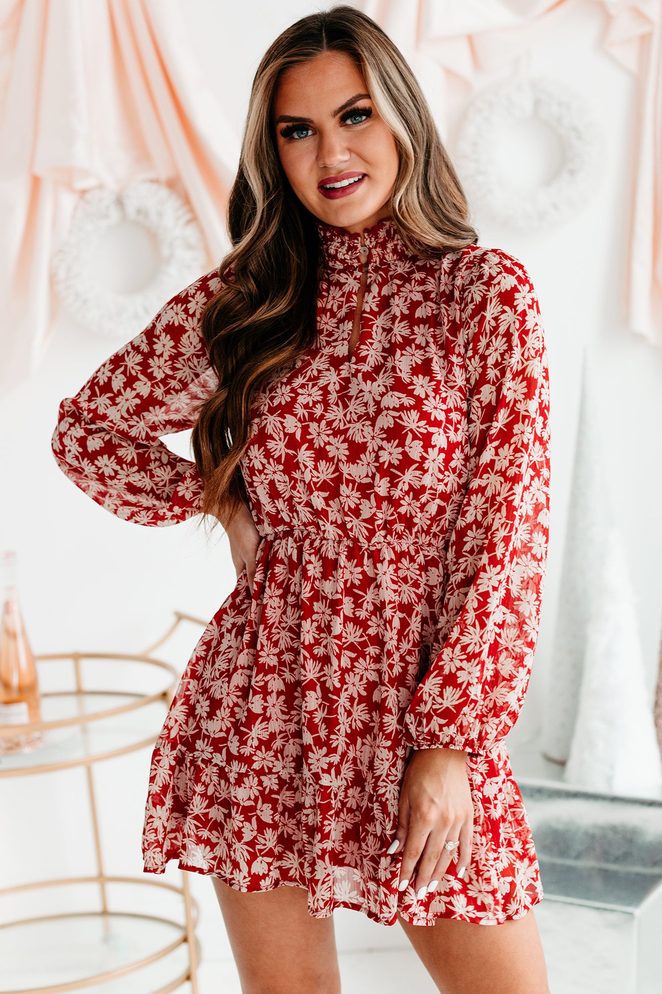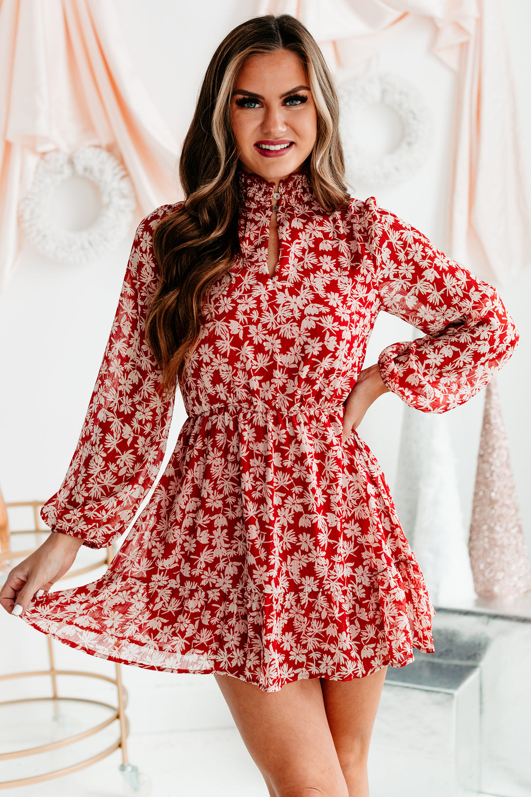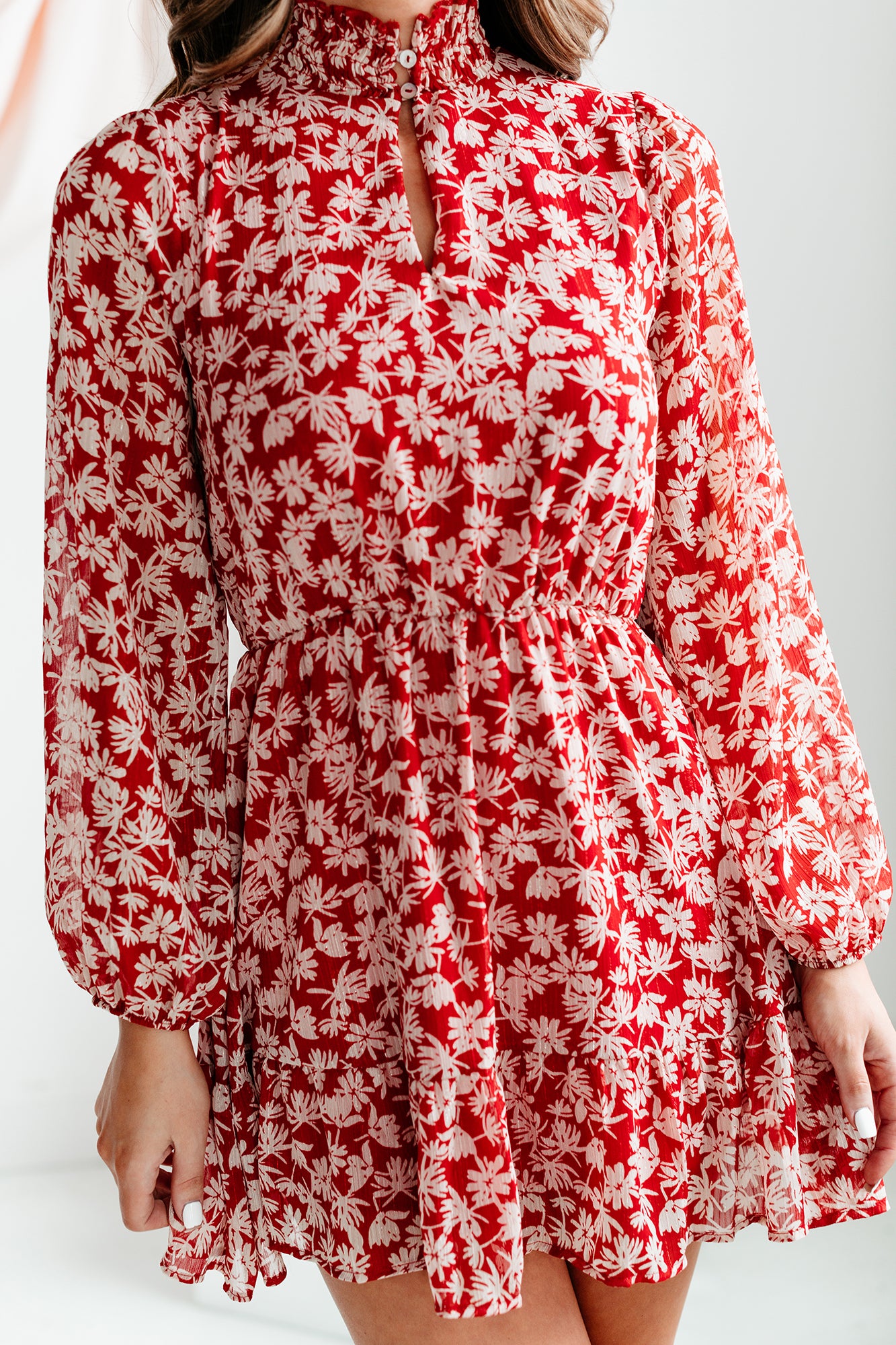 Endless Devotion Long Sleeve Floral Mini Dress (Red/White) - NanaMacs