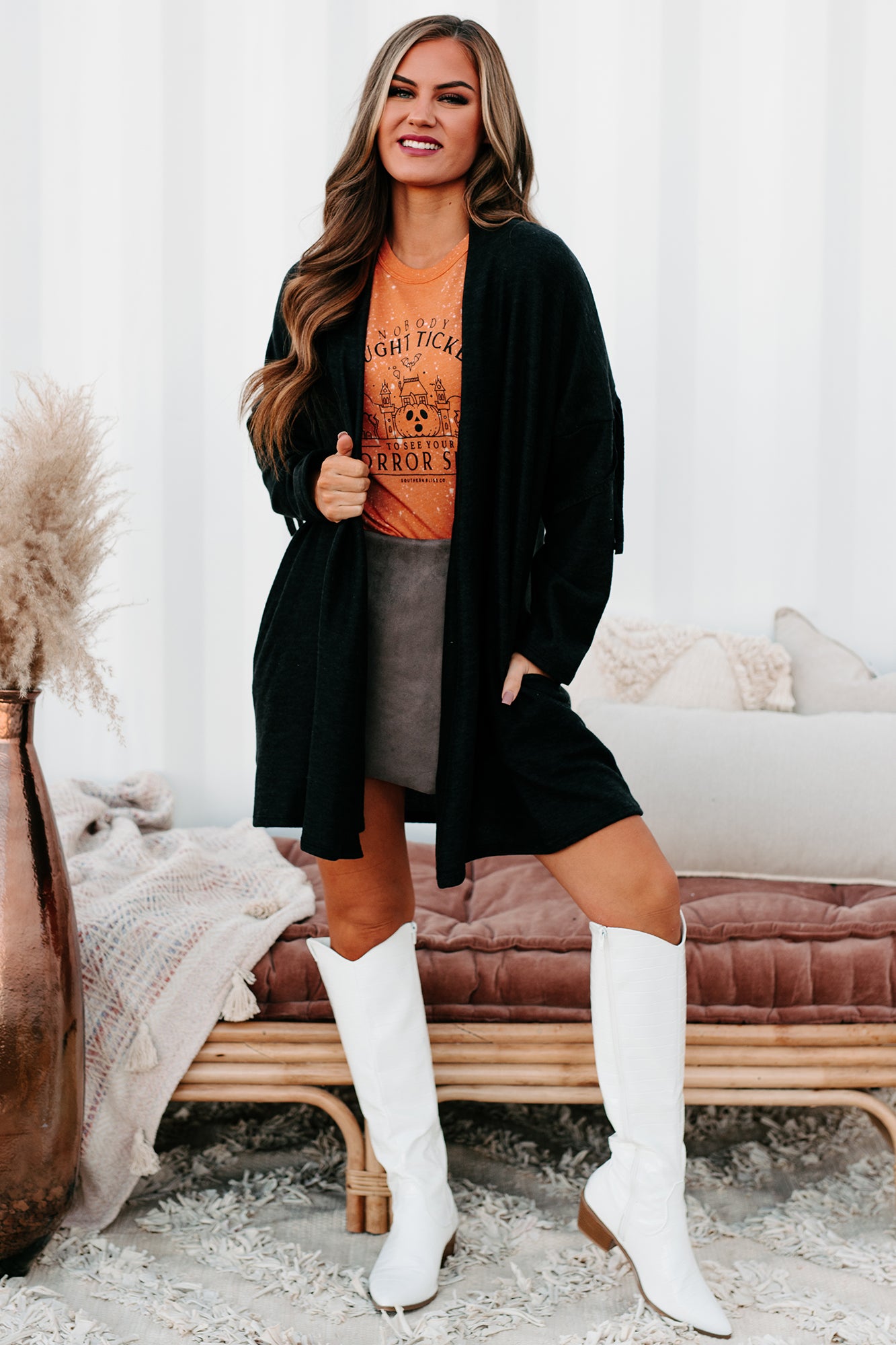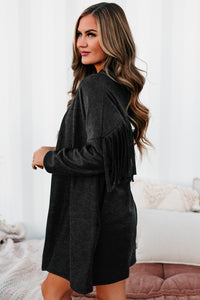 Eternal Hope Fringe Back Cardigan (Charcoal)