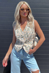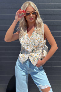 Eternally Rooted Floral Embroidered Vest Top (Beige Multi)