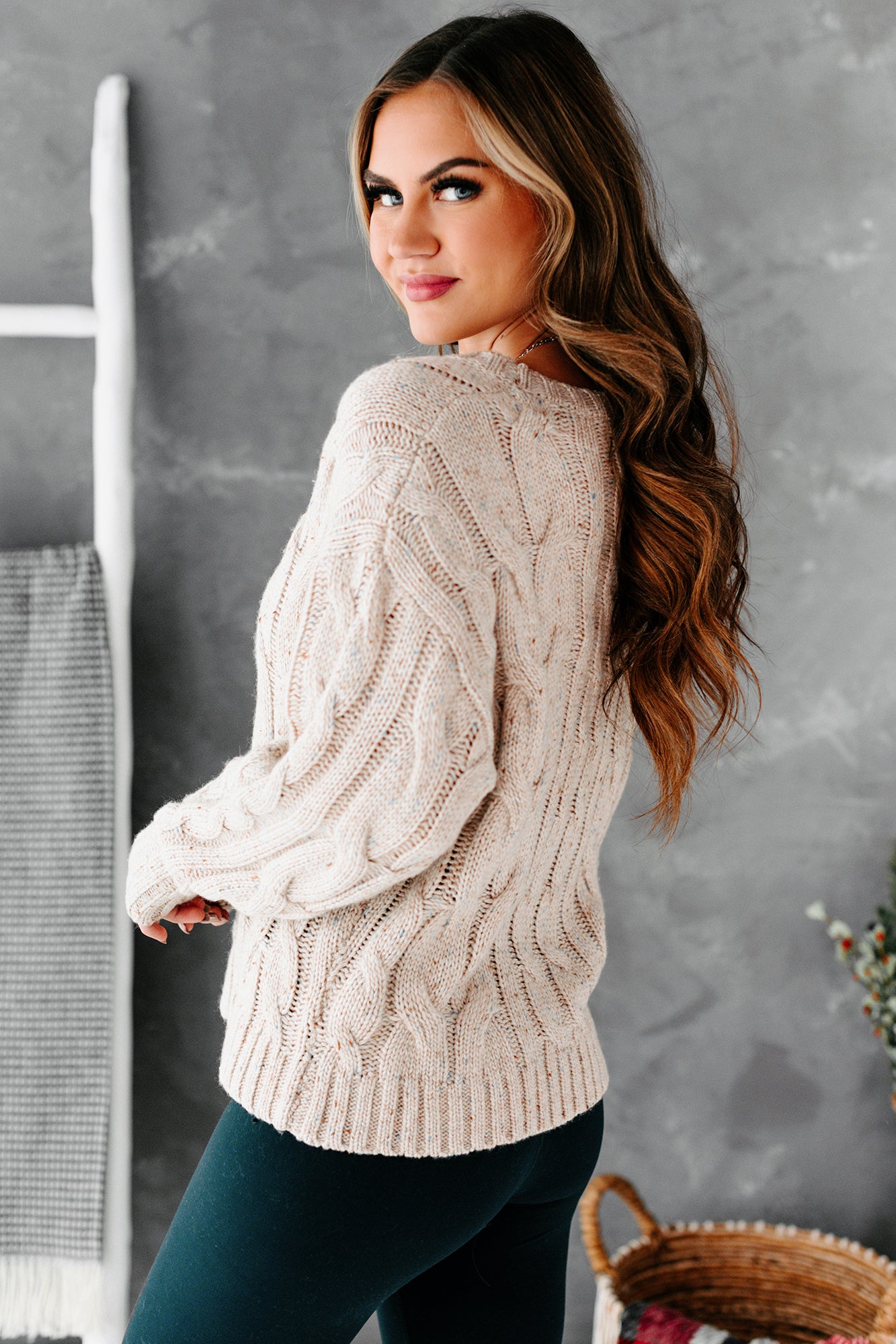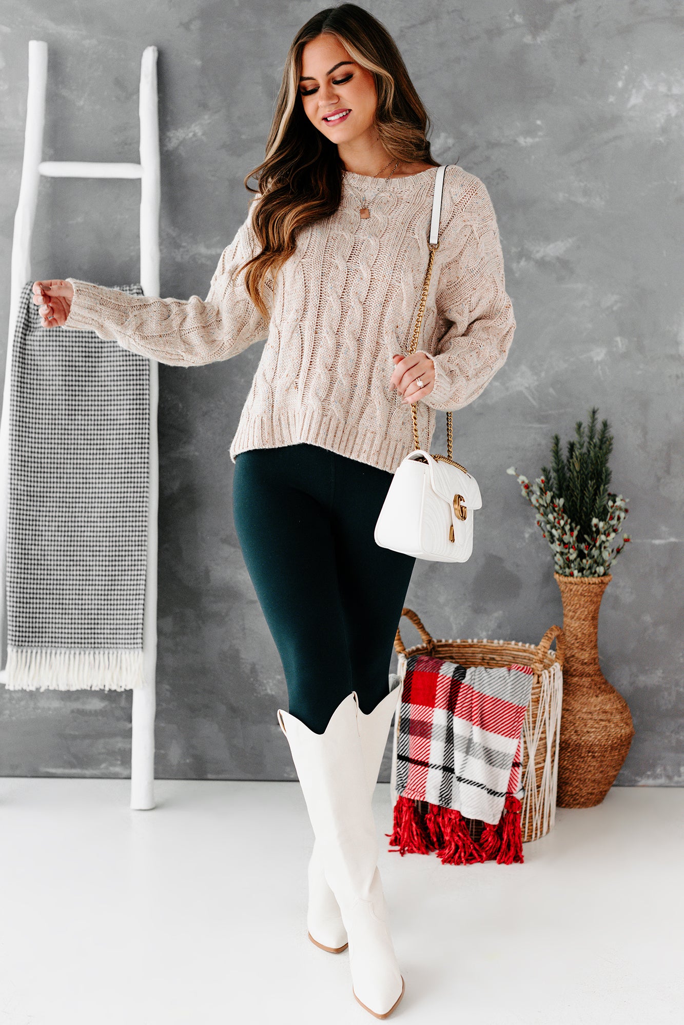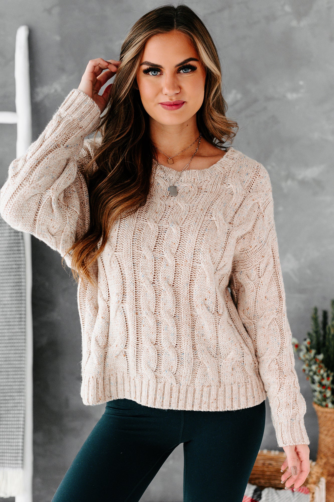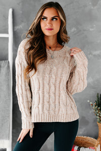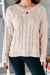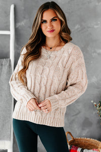 This oversized, cable knit, oatmeal sweater is the coziest addition to your wardrobe that you absolutely need!