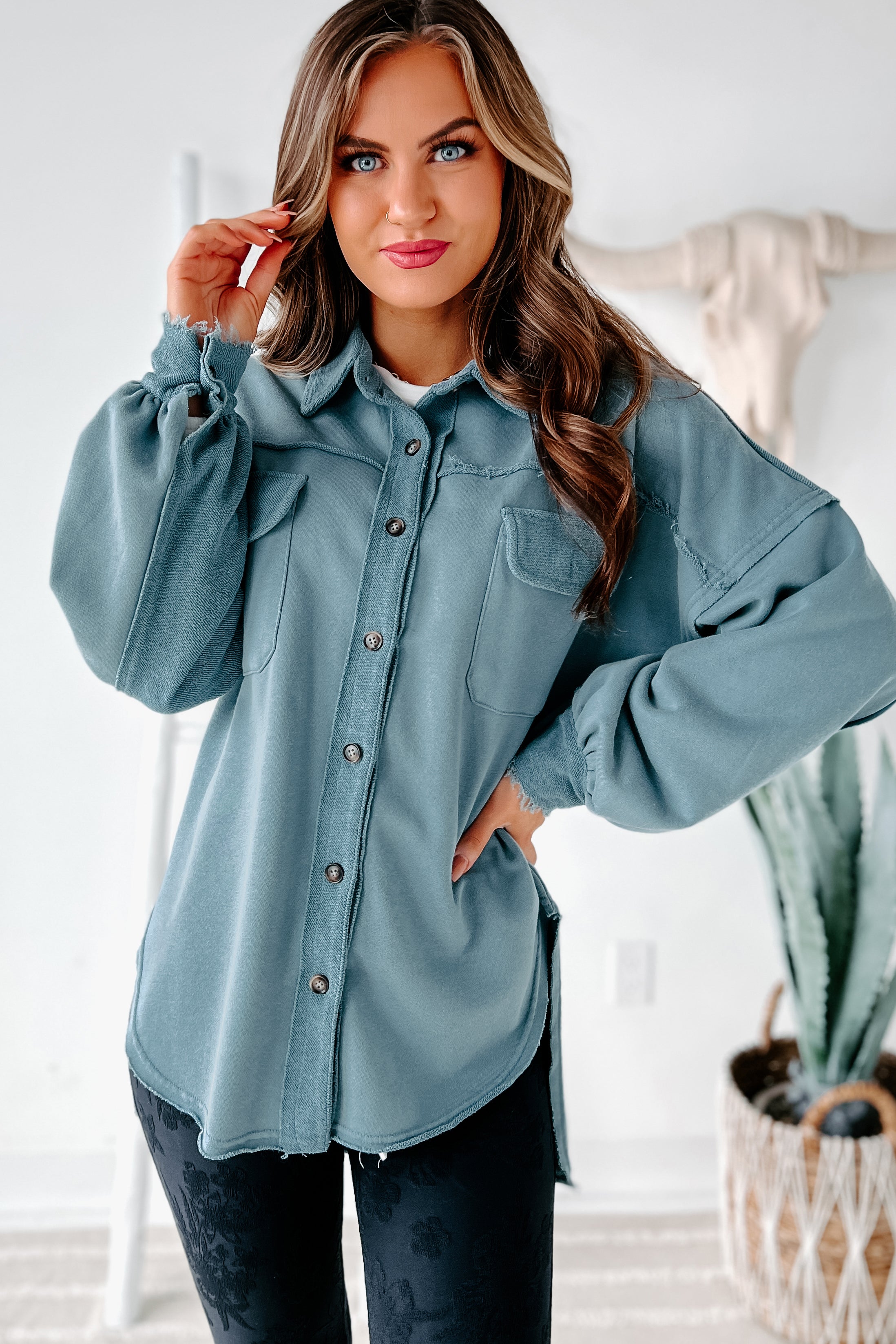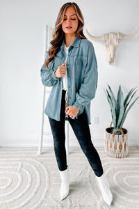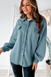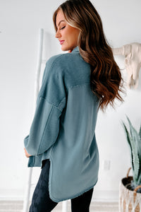 Evelina High-Low French Terry Shacket (Steel Blue) - NanaMacs