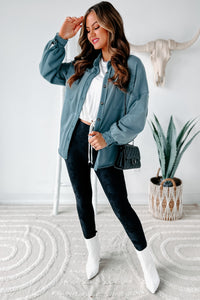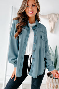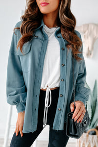 Evelina High-Low French Terry Shacket (Steel Blue)