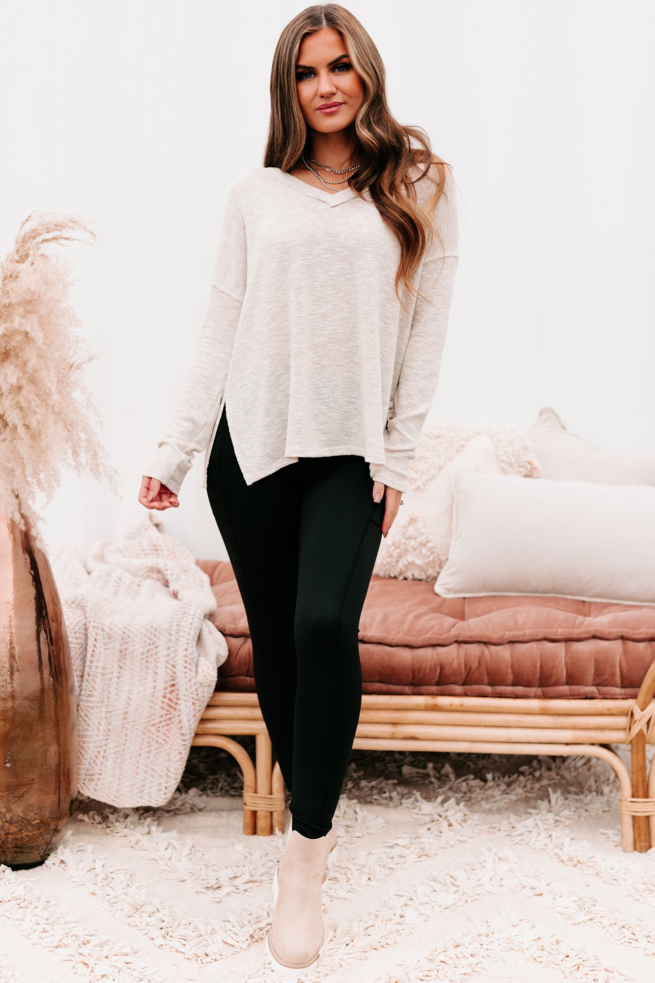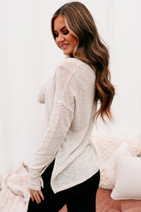 This Oatmeal, Slub Knit, V-Neck Top Is A Neutral Necessity!
