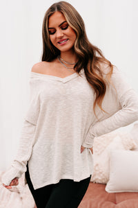 Everyday Excellence Slub Knit V-Neck Top (Oatmeal)