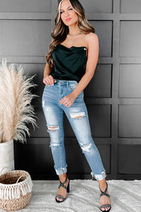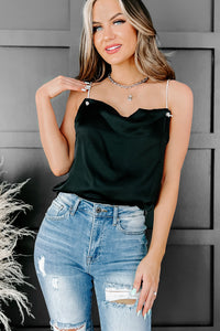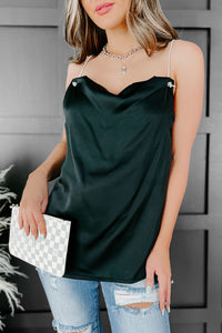 This Is The Perfect Satin Tank With Rhinestone Straps For A Date Night Or Girl's Night!