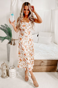 Eye Of The Beholder Satin Floral Midi Dress (Ivory) - NanaMacs