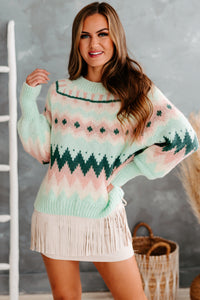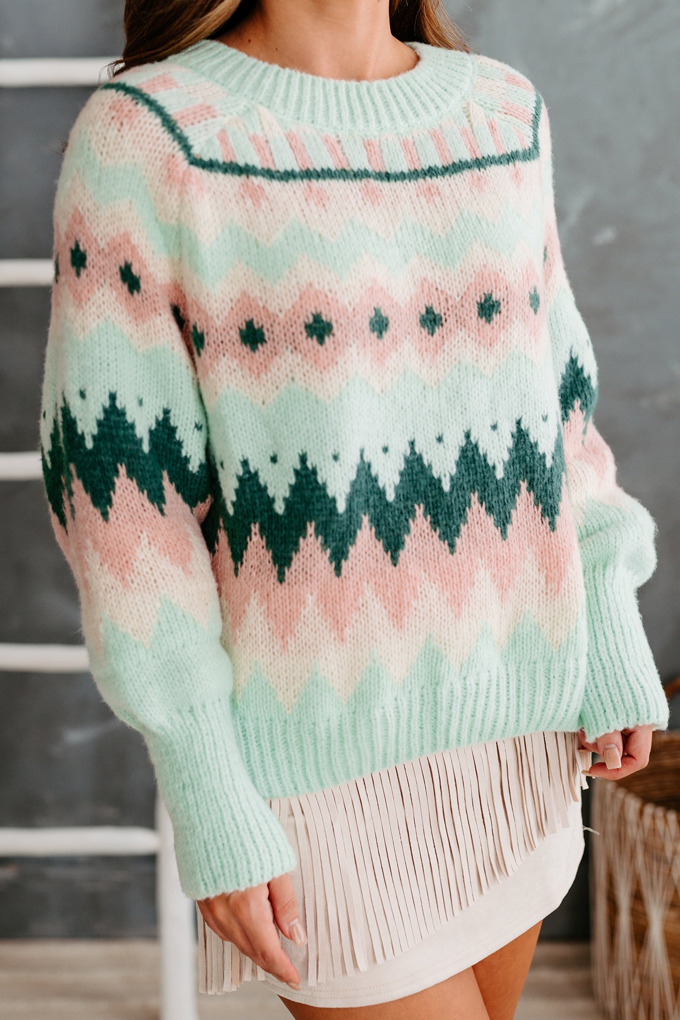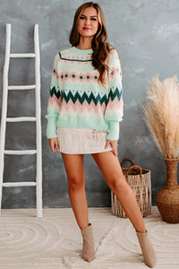 Fall Favorite Geometric Knit Sweater (Sage Mix)