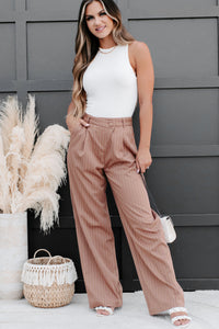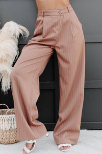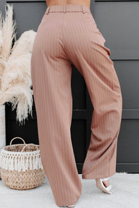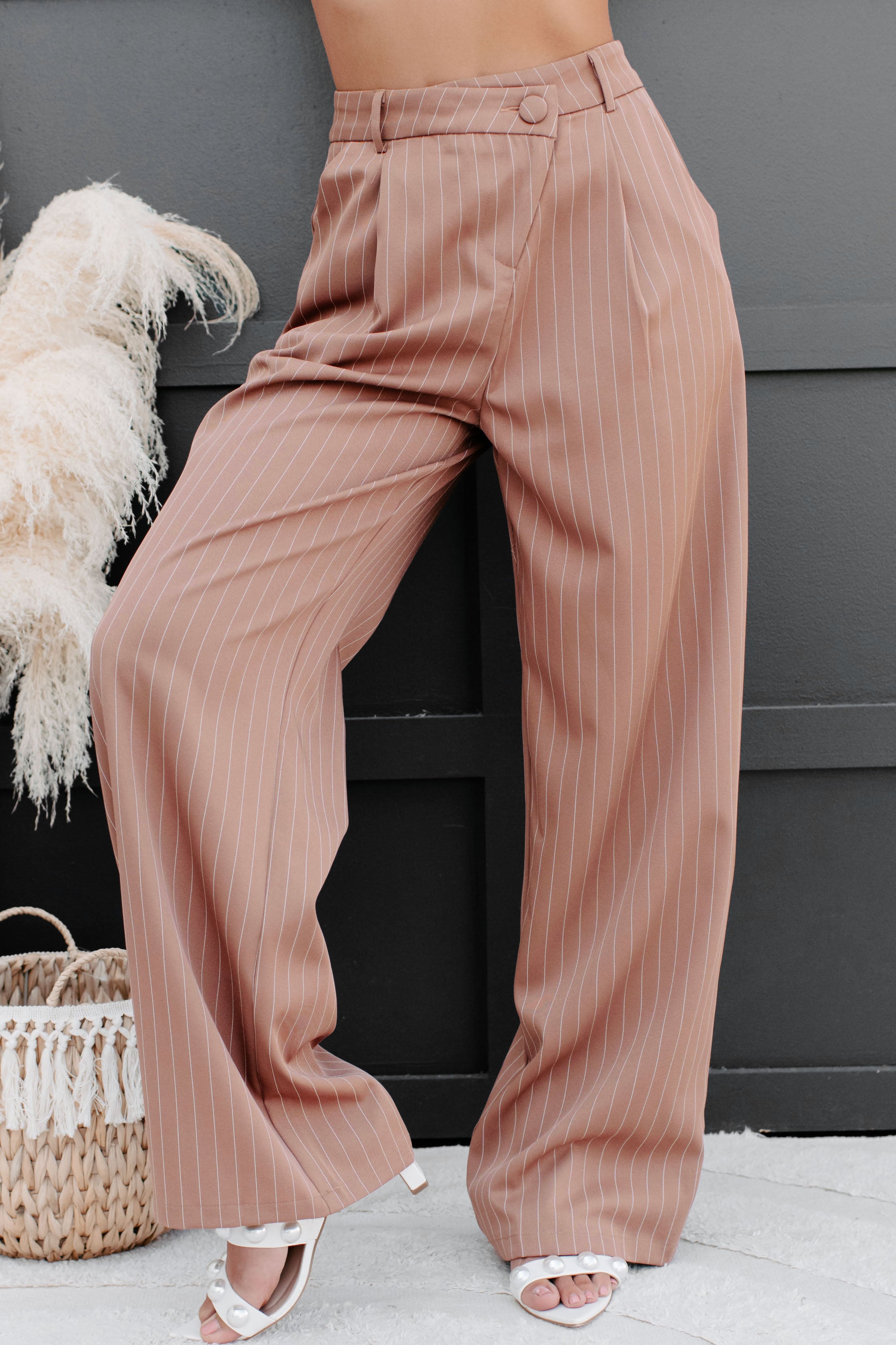 Fall From Grace Pinstripe Wide Leg Pants (Camel/White) - NanaMacs