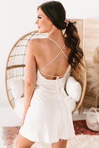 Getting Compliments Will Be Easy In This Champagne, Satin, Cowl Neck, Cross-Strap, Slip Dress!